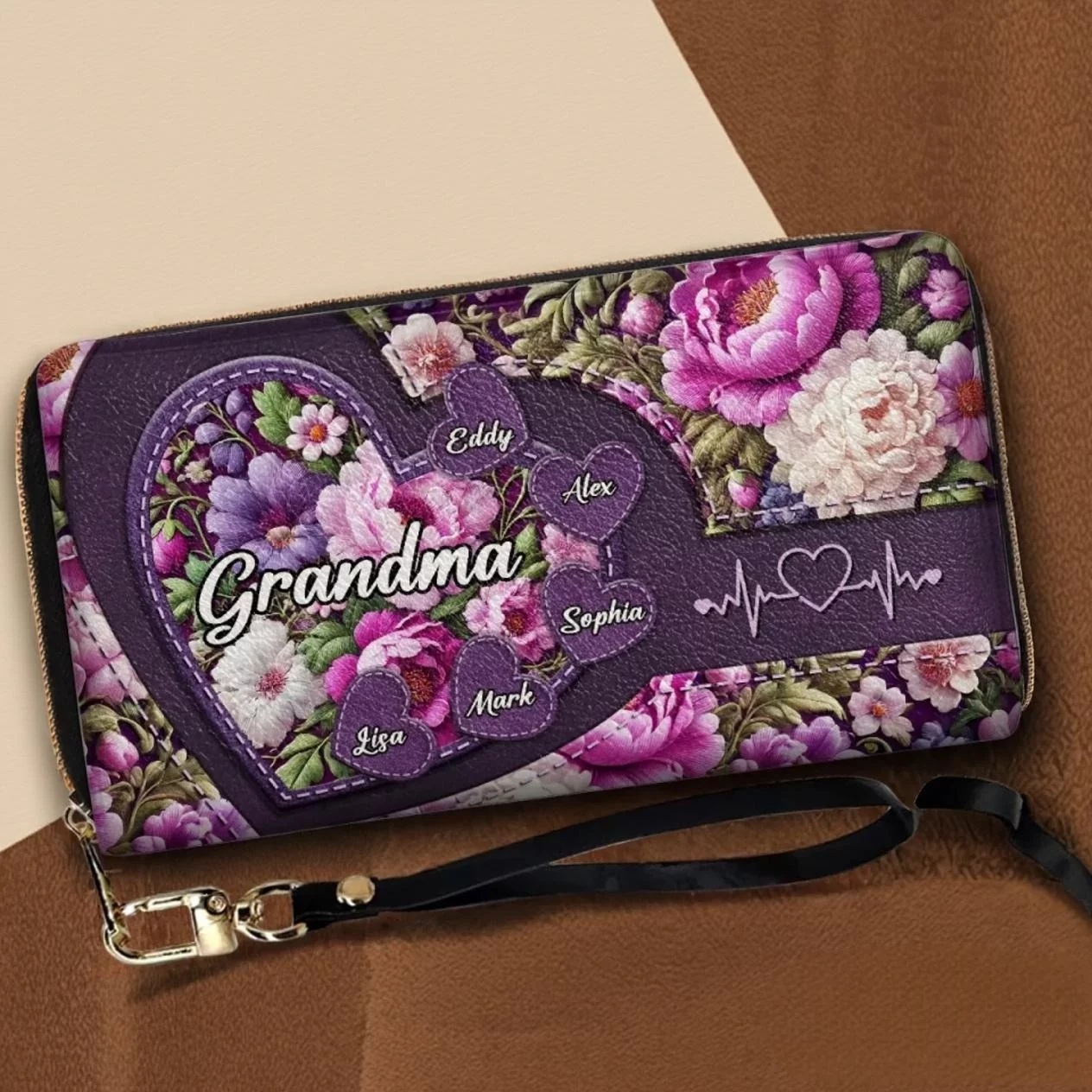 A Grandma’s Hug Makes Everything Bloom – Customizable Family Leather Long Wallet – Heartfelt Mother’s Day Gifts for Mom and Grandma