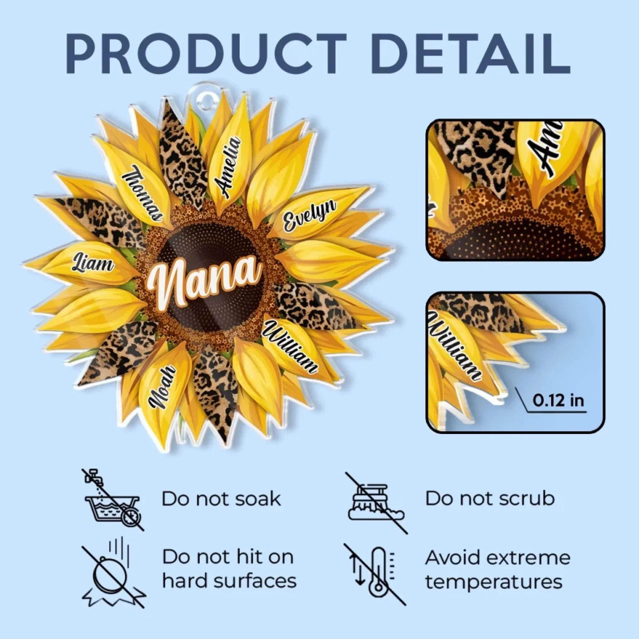 Love Unites Us, Together We Blossom – Personalized Family Custom Car Ornament – Acrylic Shaped Design – Mother’s Day, Gift For Mom, Grandma
